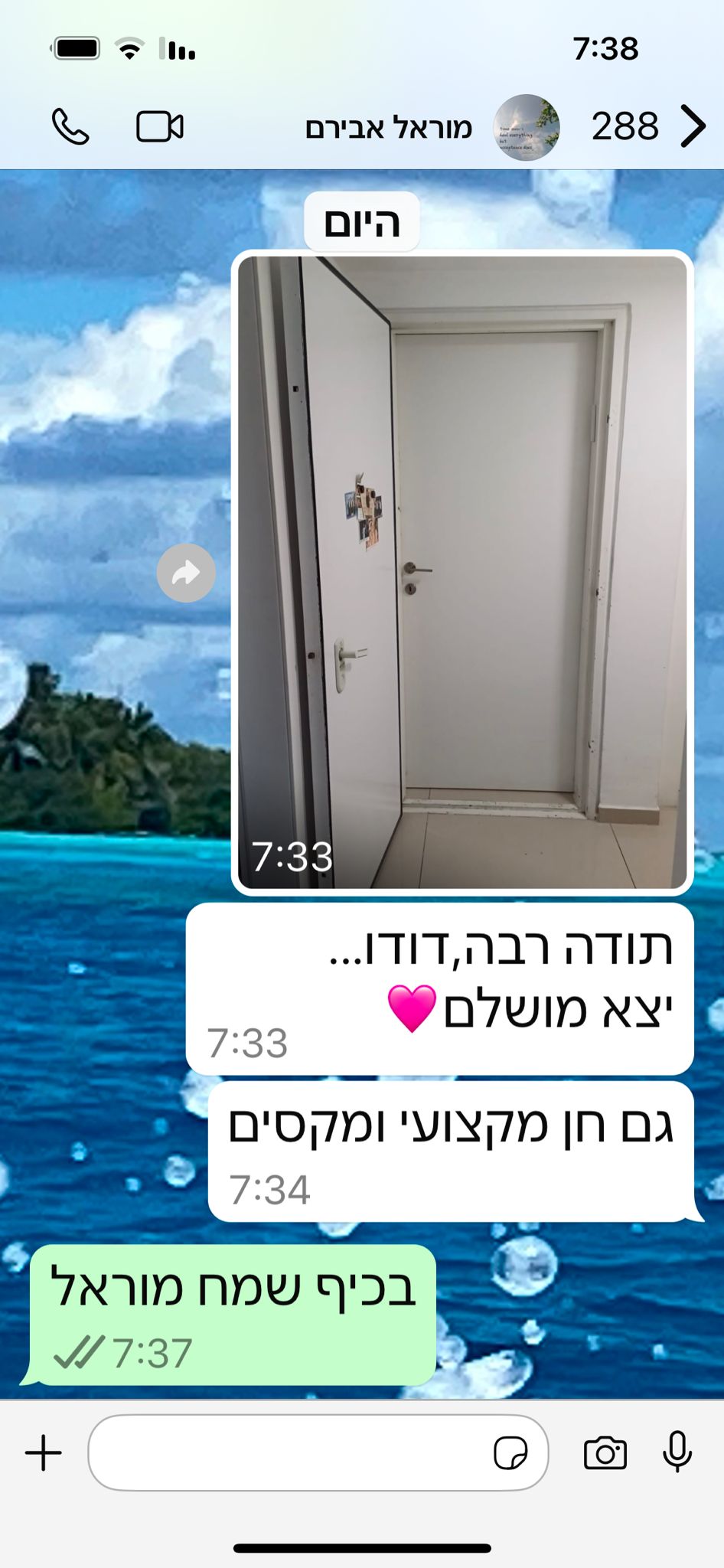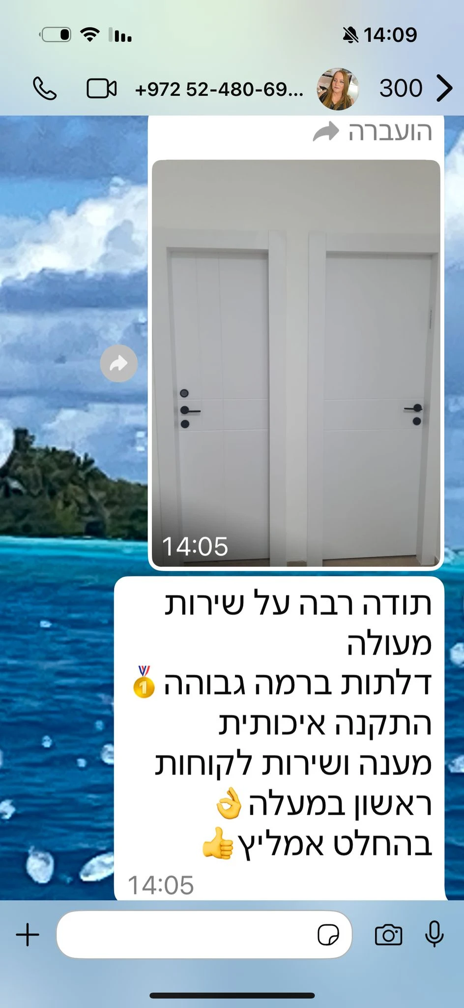 התקשרתי להזמין דלתות פנים והגיע אלי בחור ממש מקסים ומקצועי ביותר בשם מיכאל .הבחור הכי נעים שהכרתי בתחום השיפוצים והכרתי המון אנשים.
