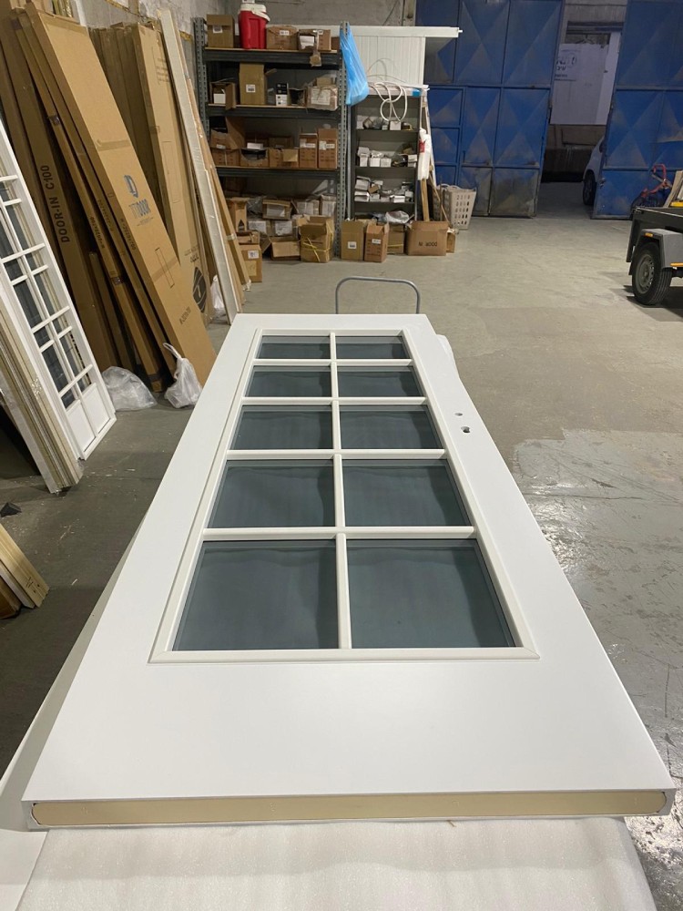 דף הבית » דלת פולימר חלון צרפתי עם זכוכית מושחמת בגוון אפור